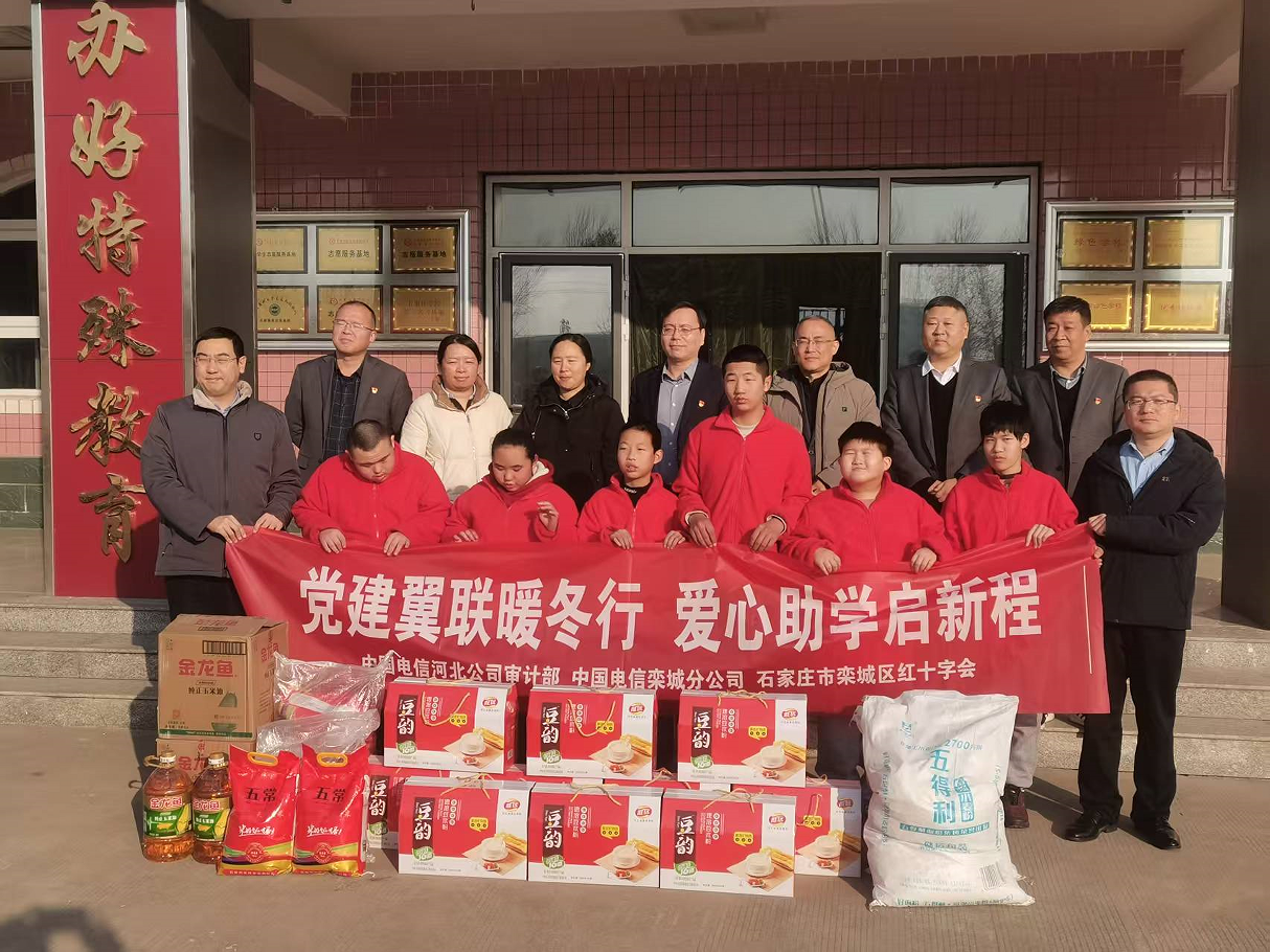 12月17日,栾城区红十字会携手中国电信栾城分公司走进栾城区特殊教育学校开展“党建翼联暖冬行 爱心助学启新程”爱心慰问活动,向学校捐赠大米、面粉、豆粉、色拉油等生活用品。