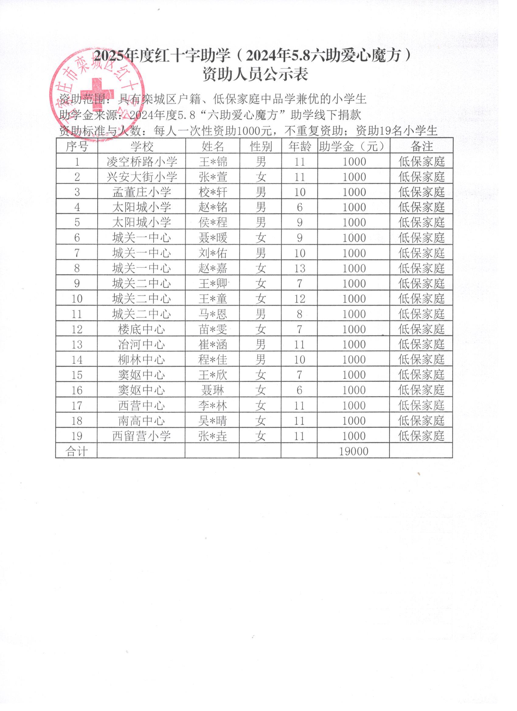 2025年度红十字助学(2024年5.8六助爱心魔方)资助人员公示表
